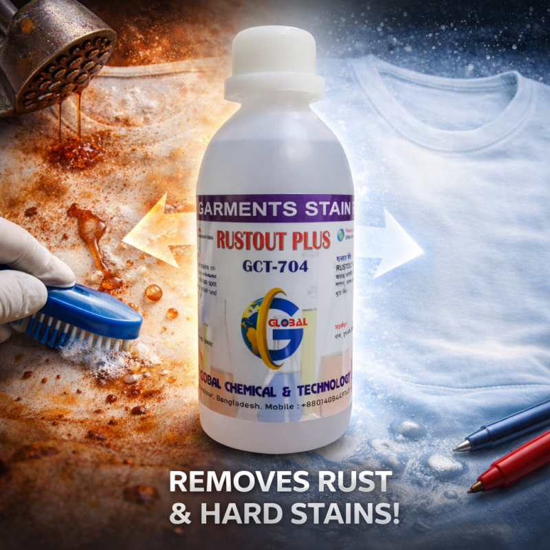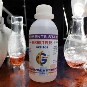 - Rustout (GCT-704) is a high-performance garments rust and hard stain remover chemical formulated to effectively remove rust marks, metal stains and tough stains from fabric surfaces. It is suitable for use on colored and white fabrics when applied correctly, making it an essential solution for garments finishing and quality control departments.
